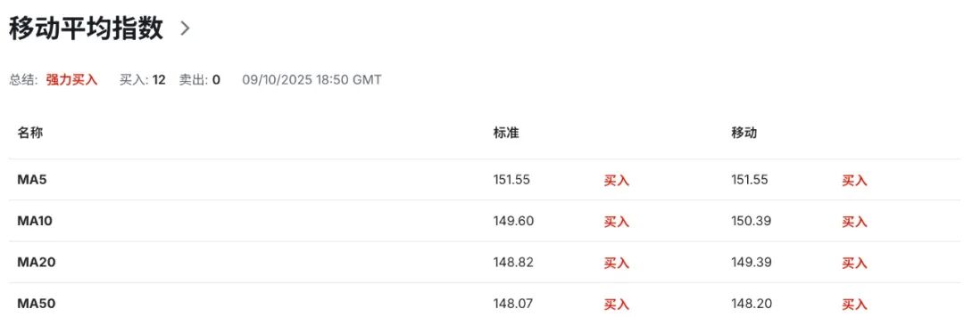 技术指标显示,日线级别布林带上轨切入点指向152.40区域水平为汇价提供短期动态阻力,布林带中轨运行线指向的148.70区域水平为走势提供潜在强弱分化,布林带下轨切入点指向的145.00区域水平为汇价提供短期动态支撑。当前汇价站稳于布林带上轨区域上方运行,体现多头动能的强劲姿态同时上行趋势确立。布林带开口呈现扩张状态,表明短期波动率有所上升。与此同时,14日RSI相对强弱指标升至71.60附近深度超买区域,进一步巩固多头主导优势,但需警惕潜在的技术性回调需求。