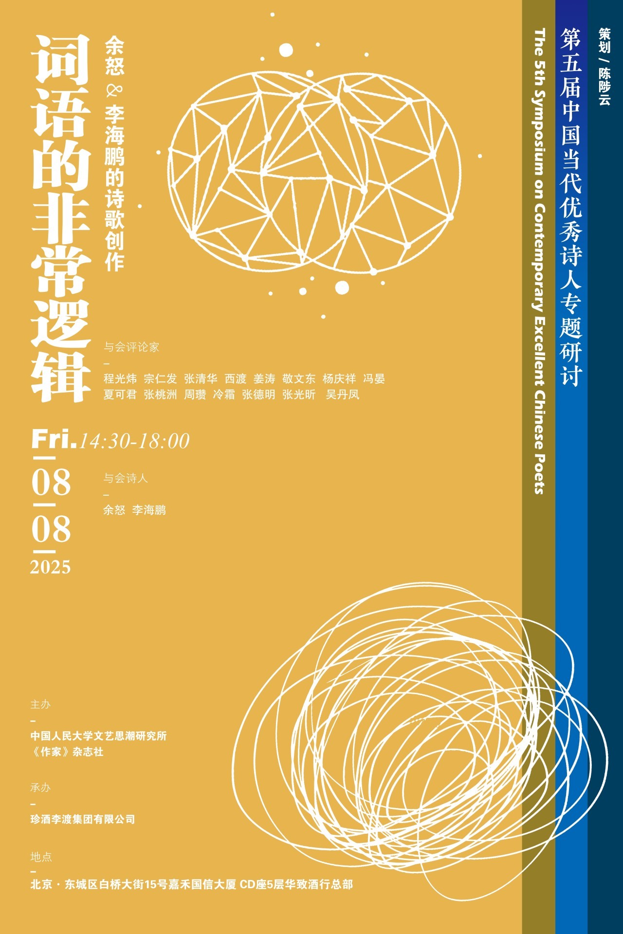 “中国当代优秀诗人专题研讨”由诗人陈陟云创办并策划,从2020年至今已经历时五届。活动始终围绕着中国诗歌创作的“当代性”“先锋精神”以及具有经典文本写作趋势的诗歌创作进行,对入选诗人展开多角度的评论和分析。